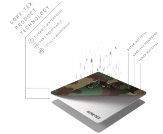 Providing extended comfort, weather protection, and value to the military for more than 30 years. Durably waterproof even after exposure to common battlefield contaminants (oils, gun lubricants, fuel, etc), Totally windproof, keeping the chill out in the harshest environments, and Very Breathable, allowing sweat vapor.